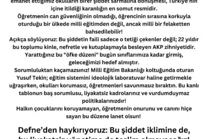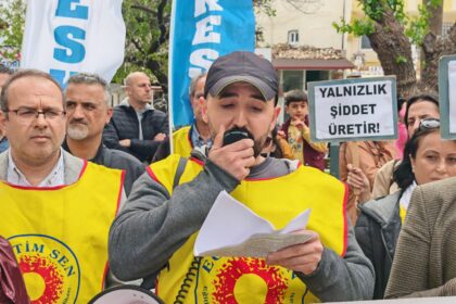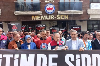 Samandağ Eğitim Sen Şube Yönetimi, Şanlıurfa’nın Siverek ilçesinde bir okula yönelik gerçekleştirilen saldırıya sert tepki göstererek 1 günlük iş bırakma eylemi gerçekleştirdi. Eylemin ardından Abdull...