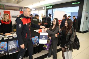 Hatay Büyükşehir Belediyesi AKOM Şube Müdürlüğü ekipleri, 112 acil çağrı hizmetlerinin tanıtımının sağlanması amacıyla İskenderun Primemall Alışveriş Merkezi’nde düzenlenen etkinliğe katıldı.