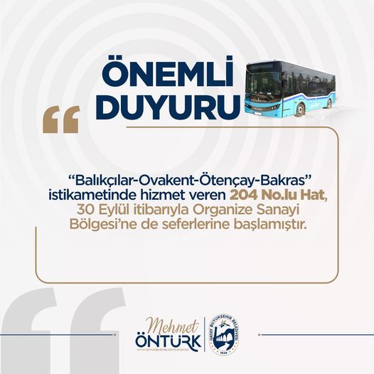 Bu kapsamda “Balıkçılar-Ovakent -Ötençay- Bakras” istikametinde hizmet veren 204 no.lu hat 30 Eylül’den itibaren Organize Sanayi Bölgesi’ne de seferlerine başladı.