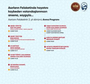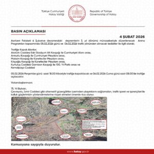 “Asırların Felaketi 6 Şubat ve devamındaki depremlerin 3. yıl dönümü münasebetiyle düzenlenecek Anma Programları kapsamında 05.02.2026 günü ve 06.02.2026 trafik yönünden alınacak tedbirler ile ilgili olarak;