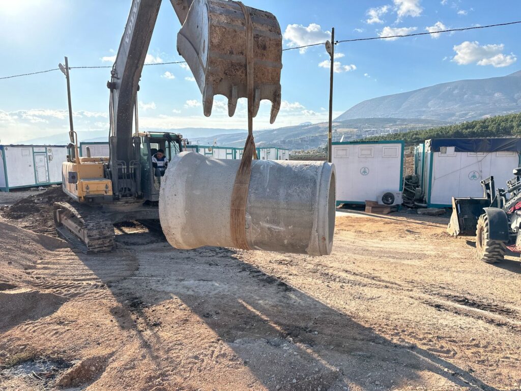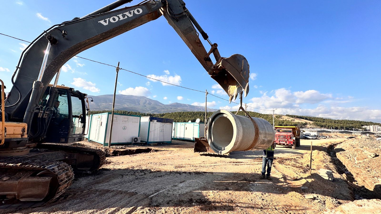HATAY Büyükşehir Belediyesi ekipleri, bölgedeki yağmur suyu tahliye verimliliğini arttırarak sorunu giderecek olan çalışma kapsamında 1000’lik borularla toplamda 1200 metre yağmur suyu hattı inşa ediyor