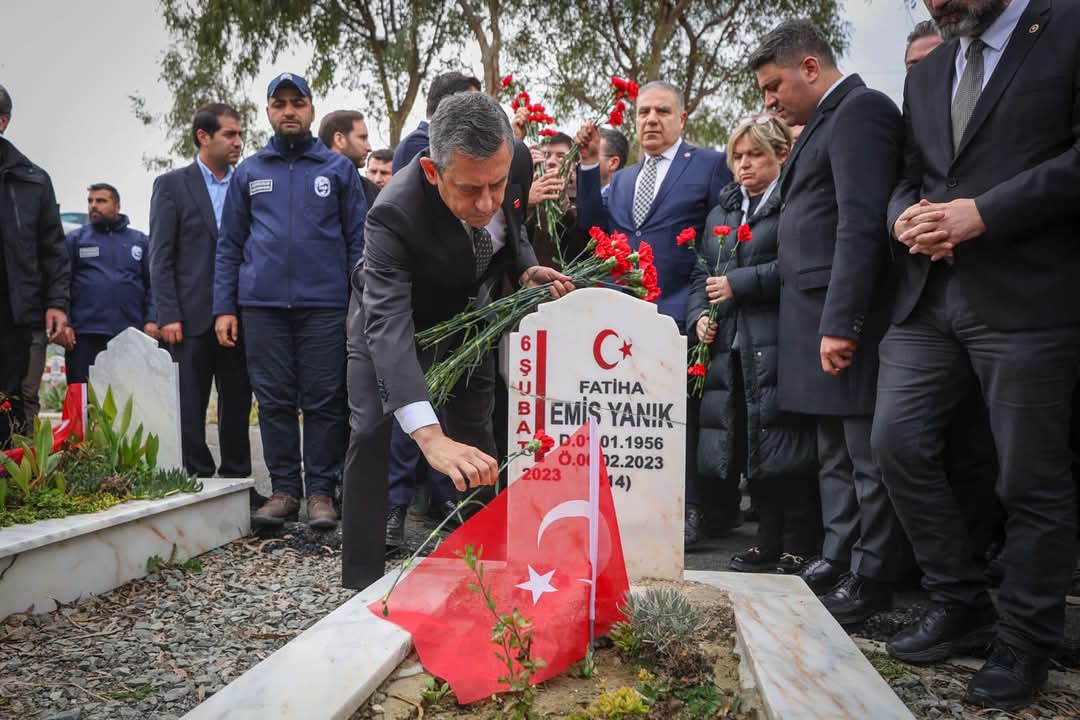 CHP Genel Başkanı Özgür Özel, 6 Şubat asrın felaketinde hayatını kaybeden Deprem şehitlerinin kabirlerine karanfil bıraktı.