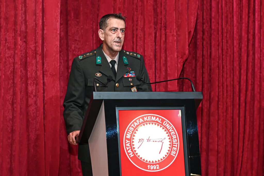 57. PİYADE ALAYI SANCAĞI REKTÖR VEYSEL EREN’E EMANET: CONKBAYIRI’NDAN GELEN SANCAK BİR YIL BOYUNCA MUSTAFA KEMAL ÜNİVERSİTESİ’NDE MUHAFAZA EDİLECEK