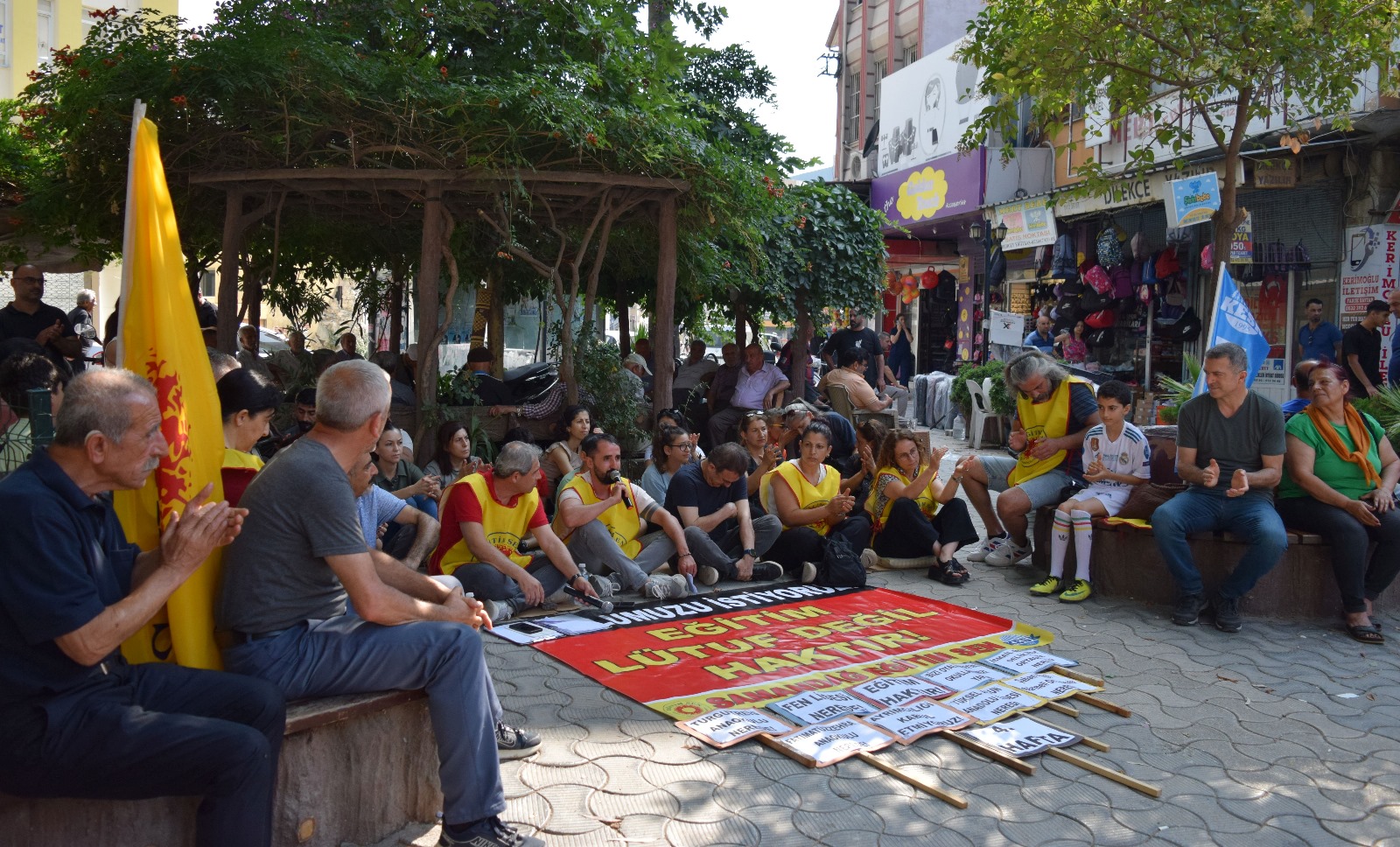 Hatay Samandağ Eğitim Sen Şube Yönetimi öncülüğünde her Pazartesi günü “Okulumuzu İstiyoruz’” “Eğitim Lütuf Değil Haktır!” şiarıyla Kurban Bayramı’nın son gününde de yine Abdullah Cömert Alanında oturma eylemine devam ettiler.