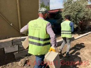 Tamamen açılan yollarda selden hasar gören duvarlarda yenileme yapan Hatay Büyükşehir Belediyesi, özellikle ara sokaklarda evlerin etrafında bulunan ve sel sonrası yıkılan duvarlarda örme çalışmaları yapıyor.