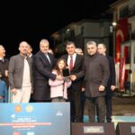 Başkan Mehmet Öntürk ziyaretlerinden dolayı Bakan Alpaslan Bayraktar’a teşekkürlerini ileterek, mozaik işlemeli tablo hediye etti.