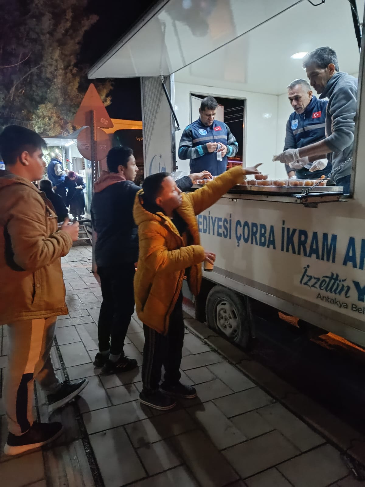 Düzenlenen programda Antakya Belediyesi mobil mutfak ekiplerince hazırlanan tatlılar yatsı namazından çıkan vatandaşlara ikram edildi.