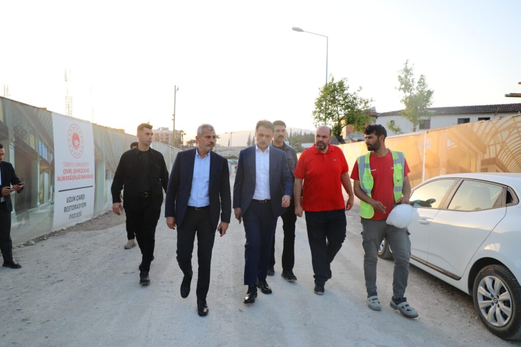 Tarihi Uzun Çarşı’da yıkılan işyerlerinin yerine yapılan inşaat çalışmalarında da incelemelerde bulunan Hatay Büyükşehir Belediye Başkanı Mehmet Öntürk, Kurtuluş Caddesi ve Habib-i Neccar Cami’sinin restorasyon süreci ile ilgilide bilgiler aldı.