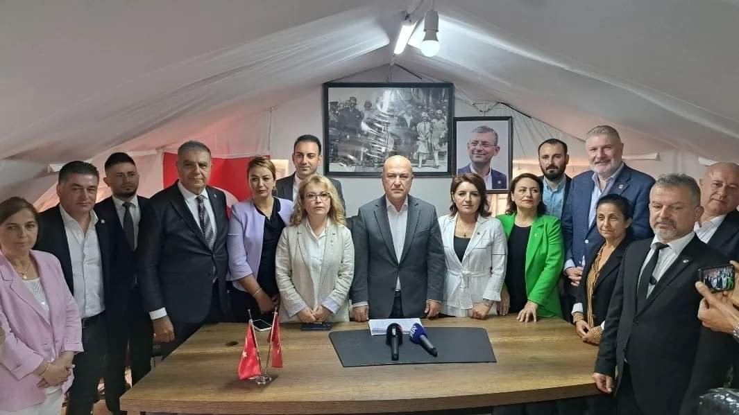 CHP Hatay İl Merkezi çadırında yapılan bası açıklamasına,  Genel Başkan Yardımcısı  Murat Bakan, İstanbul Milletvekili Ayşe Sibel Yanıkömeroğlu, Adana Milletvekili Müzeyyen Şevkin, Mersin Milletvekili Gülcan Kış, İyi Parti’den CHP’ye geçen Hukukçu Prof. Dr. Bahadır Erdem, Hatay Milletvekilleri, Hatay İl Örgütü üyeleri, İlçe Başkanları ve Defne Belediye Başkanı  Halil İbrahim Özgün  katıldı.