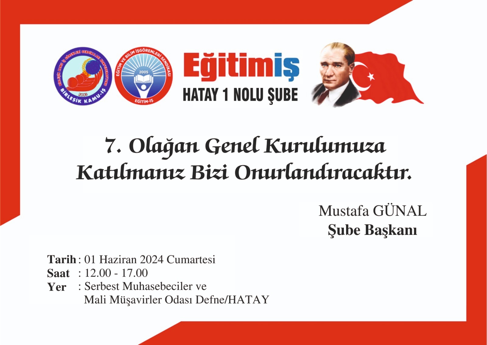 Eğitim İş Hatay 1 Nolu Şubesi 7. Genel kurulunu 1 Haziran Cumartesi günü (Yarın) yapacak.