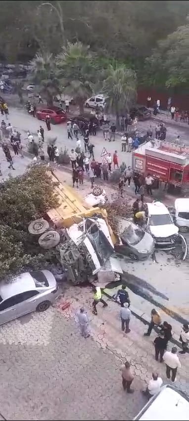 Yayladağı/ Defne istikametine seyir halindeki çekicinin Defne uygulama noktası mevkiinde, fren sisteminde meydana gelen arıza nedeniyle duramayarak önünde seyir halinde olan, çekiciye çarparak Boğaziçi otel istikametine 7 araca çarparak yan yatması sonucu meydana gelen trafik kazasında,