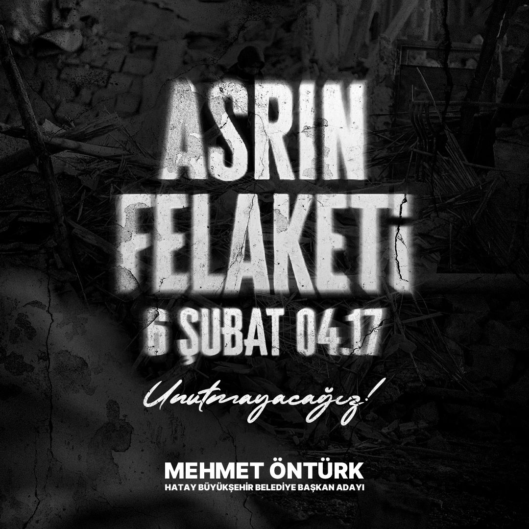 AK Parti Hatay Büyükşehir Belediye Başkan Adayı Mehmet Öntürk, Asrın felaketi 6 Şubat Depremi dolayısıyla mesaj yayınladı.