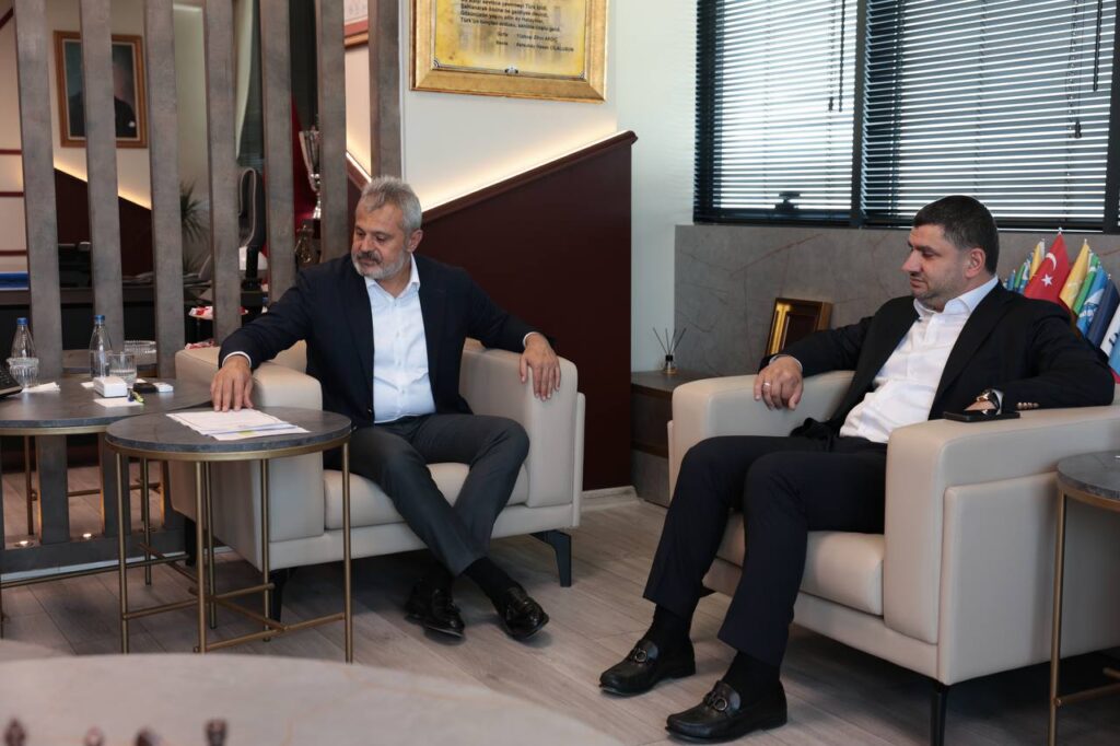 Ziyarette Hatay’ın ihya ve inşa çalışmalarıyla ilgili fikir alışverişinde bulunulurken Başkan Mehmet Öntürk, nazik ziyaretlerinden ötürü Yahya Çelik veRasim Erdoğmuş’a teşekkür etti.