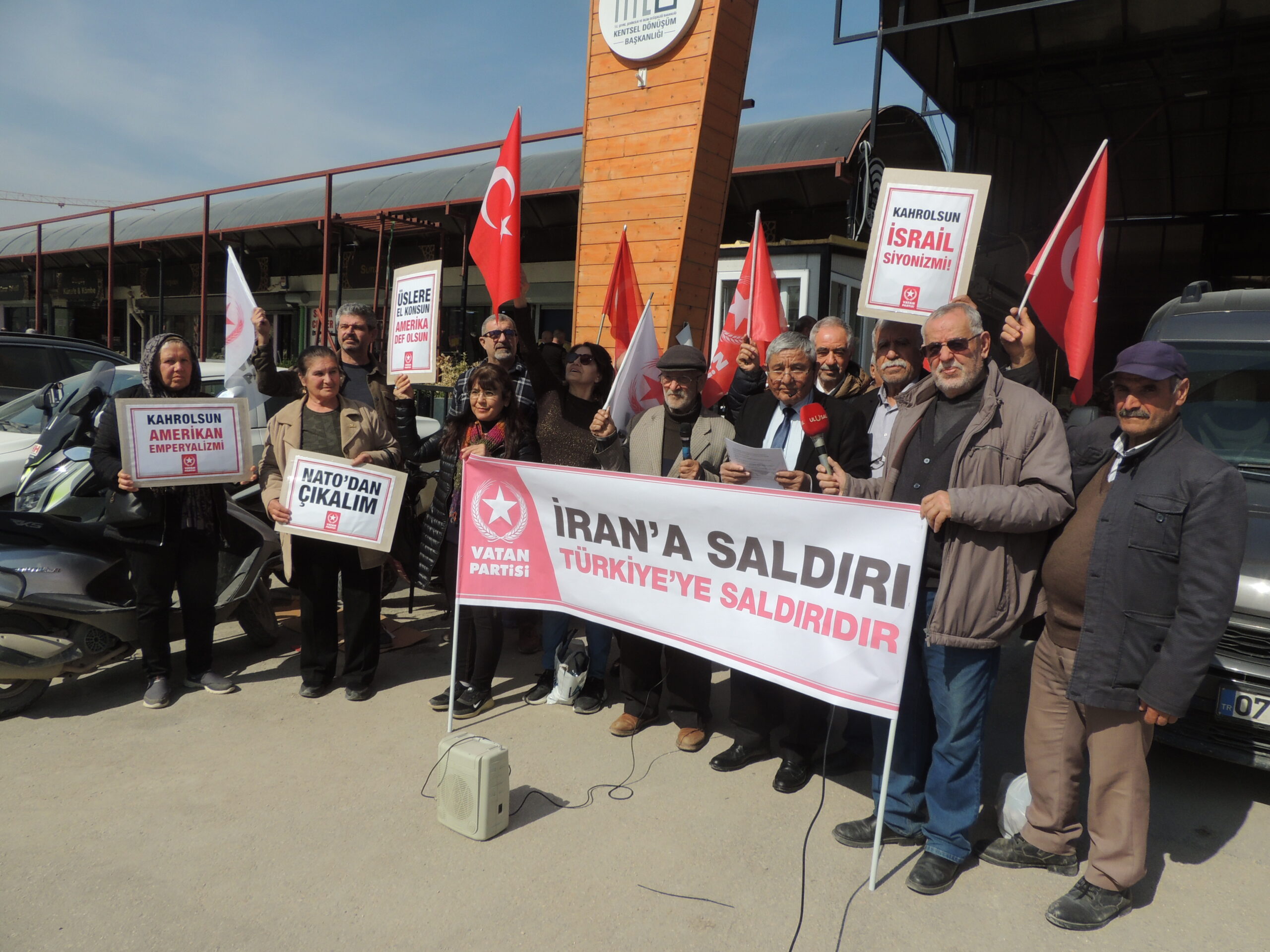 Vatan Partisi Hatay İl Başkanı Sadık Karakaş Antakya Uzun Çarşı önünde bir basın açıklaması yaparak, Amerika ve İran’ın saldırısın kınayan bir basın açıklaması yaptı.