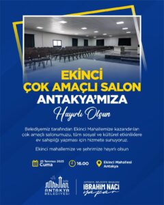 Antakya Belediyesi, Ekinci Mahallesine kazandırdığı çok amaçlı salonun açılışını 25 Temmuz Cuma günü (Yarın) yapacağını belirtti.