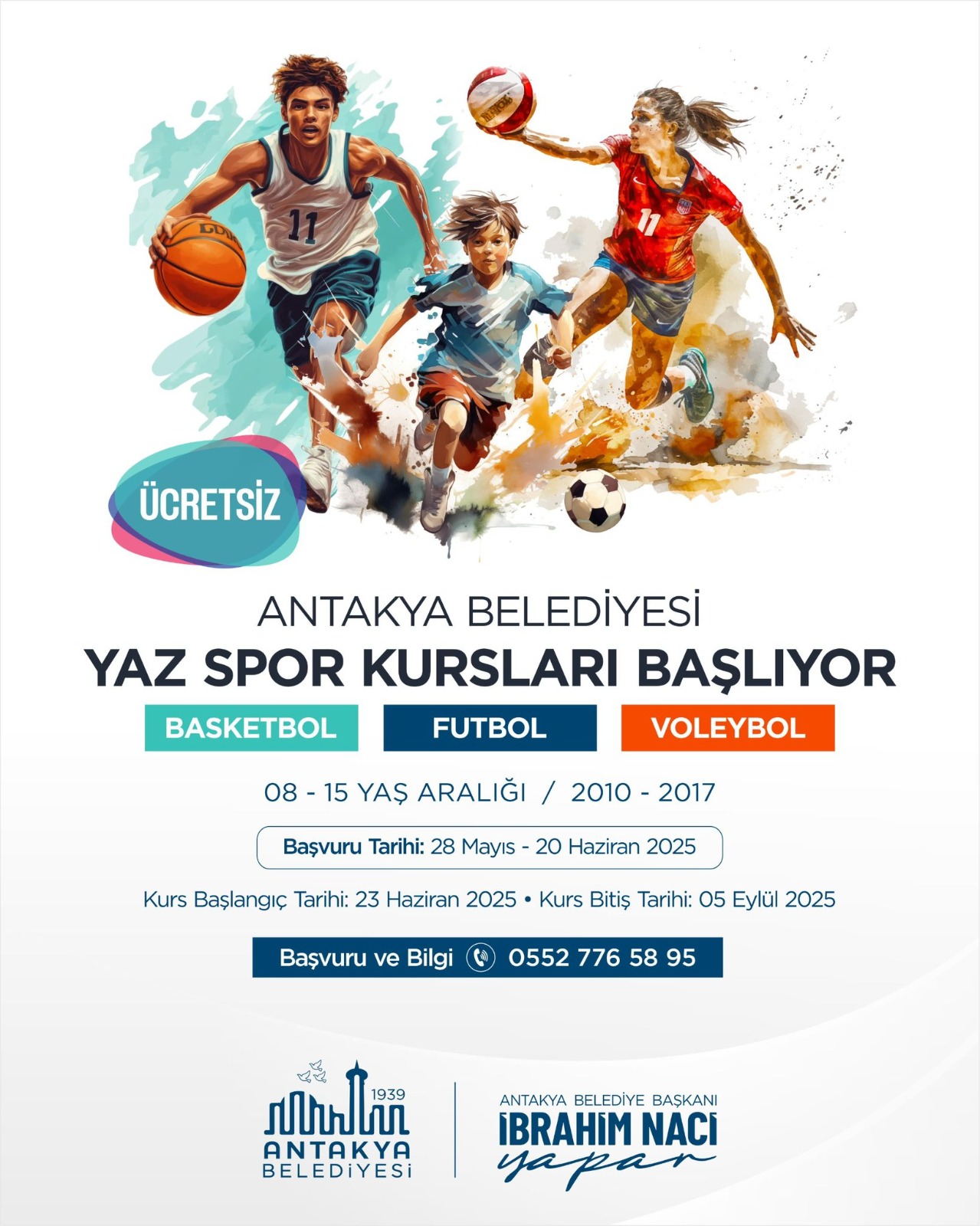 Antakya Belediyesi’nden yapılan açıklamada; 8-15 yaş arası çocuklar için basketbol, futbol ve voleybol kurslarının başvuru tarihlerinin 28 Mayıs-20 Haziran tarihleri arasında gerçekleştirileceği belirtildi.