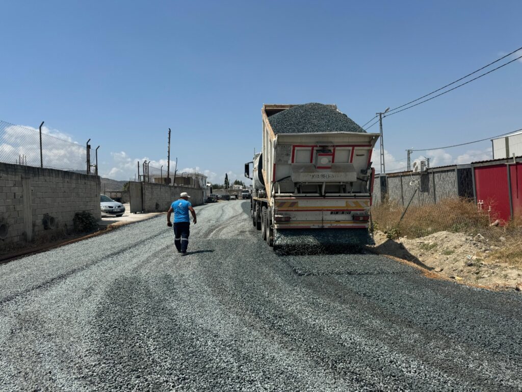 Antakya Belediyesi Fen İşleri Müdürlüğü ekipleri, Narlıca Mahallesi Bursa-Kütahya Konteyner Kent çevresinde sathi asfalt çalışması gerçekleştiriyor.