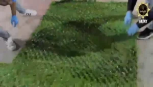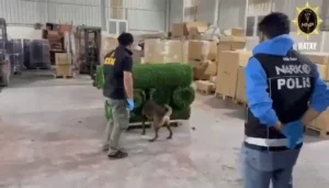 Hatay Valiliğinden yapılan açıklamada,  Hatay Emniyet Müdürlüğü görevlilerince Uyuşturucu İmal ve Ticaretine yönelik yapılan çalışmalar kapsamında Antakya Derince Mahallesinde bulunan bir iş yerinde yapılan aramada bahçe çiti yapımında kullanılan suni çimler arasında gizlenmiş halde;