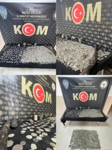 Hatay Valiliğinden konuya ilişkin yapılan açıklamada, Hatay Emniyet Müdürlüğü görevlilerince kaçakçılık olaylarına yönelik yapılan çalışmalar kapsamında, 04.04.2026 günü Antakya ilçesi Kardeşler Mahallesi İzmir Caddesi üzerinde durdurulan bir araçta yapılan aramada; 12.767 adet Roma, Bizans, Hitit, Antiochia ve Makedonya İmparatorluğu dönemlerine ait olduğu değerlendirilen sikke, 300 adet değişik şekillerde obje, 9 adet biblo/obje ile 2 adet 19. yüzyıl dönemine ait tüfek olmak üzere, toplam 13.078 adet tarihi eser olduğu değerlendirilen materyal ele geçirildiği bildirildi.