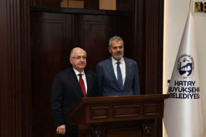 Millî Savunma Bakanı Yaşar Güler, bir dizi temas ve ziyaret kapsamında geldiği Hatay’da, Hatay Büyükşehir Belediyesini ziyaret etti. Hatay Büyükşehir Belediye Başkanı Mehmet Öntürk tarafından Hatay Bü...