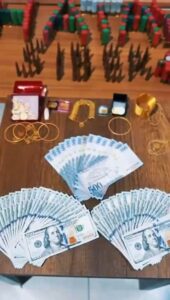 1 adet hard disk,  121.650 TL,  7.500 Arabistan Riyali,  6.550 ABD Doları, 3.000 Euro, Piyasa değeri 3.100.000 TL olan ziynet eşyası  ele geçirildiği ifade edildi.