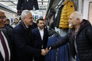 Hatay’ın yeniden ayağa kaldırılması hedefiyle yürütülen çalışmalar çerçevesinde ilçe belediyeleri, kamu kurumları, sivil toplum kuruluşları ve vatandaşlarla sürekli istişare halinde olan Başkan Mehmet Öntürk, Ayakkabıcılar Çarşısı’nda esnafla bir araya gelerek talep ve önerileri dinledi.
