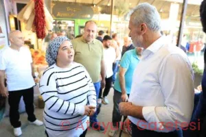 Hatay Büyükşehir Belediye Başkanı Mehmet Öntürk, ziyaretler sırasında alışveriş için çarşıda bulunan vatandaşlarla da sohbet etmeyi ihmal etmedi.