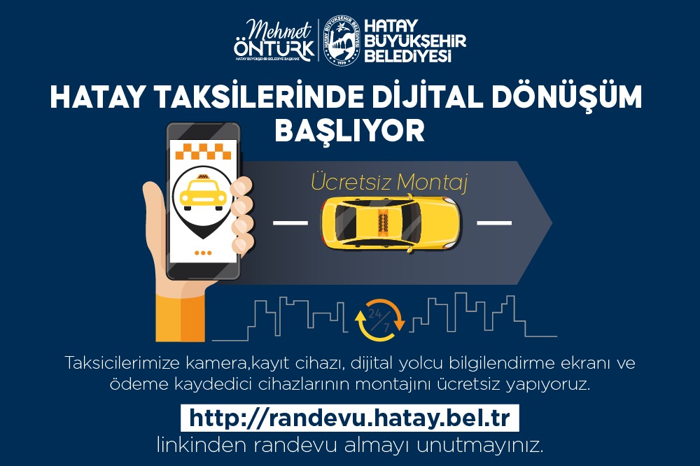 İl genelinde hizmet veren taksilere; Hatay Büyükşehir Belediyesi  tarafından kamera, kayıt cihazı, dijital yolcu bilgilendirme ekranı ve ödeme kaydedici cihazlarının montajı ücretsiz gerçekleştirilecek.