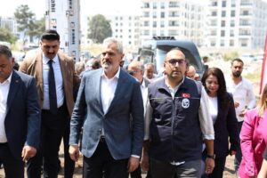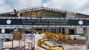 Hatay Büyükşehir Belediye Başkanı Mehmet Öntürk, Dörtyol’da yapımı devam eden kapalı spor salonu inşaatında incelemelerde bulundu.