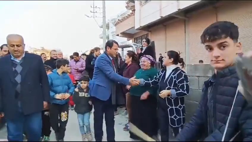 Samandağ Belediye Başkanı Av. Refik Eryılmaz, Çöğürlü Mahallesi’nde davullarla karşılandı.