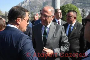 İlk olarak Atatürk Anıtı’nda düzenlenen çelenk sunma töreninde Başkan İbrahim Naci ın yanı sıra; Hatay Valisi Mustafa Masatlı, Hatay Büyükşehir Belediye Başkanı Mehmet Öntürk, Hatay milletvekilleri, İl Protokolü, basın mensupları yer aldı.