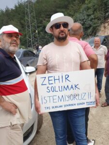 Halkın taşocağının bulunduğu yere taşocağı yöneticileri geldiler, halka “Gelin ve görün size zarar vermemesi için hangi önlemleri aldık, yakından görün” çağrısına halk ise “Siz gelin evlerimizin, bahçelerimizin toz içinde olduğunu görün, her gün camlarımızı siliyoruz, evlerimizin içi toz içinde kalıyor. Dinamit patlayınca evimiz sallanıyor, depremden kurtulduk, sizin tozunuz, yüzünden öleceğiz’ yanıtını verdiler.