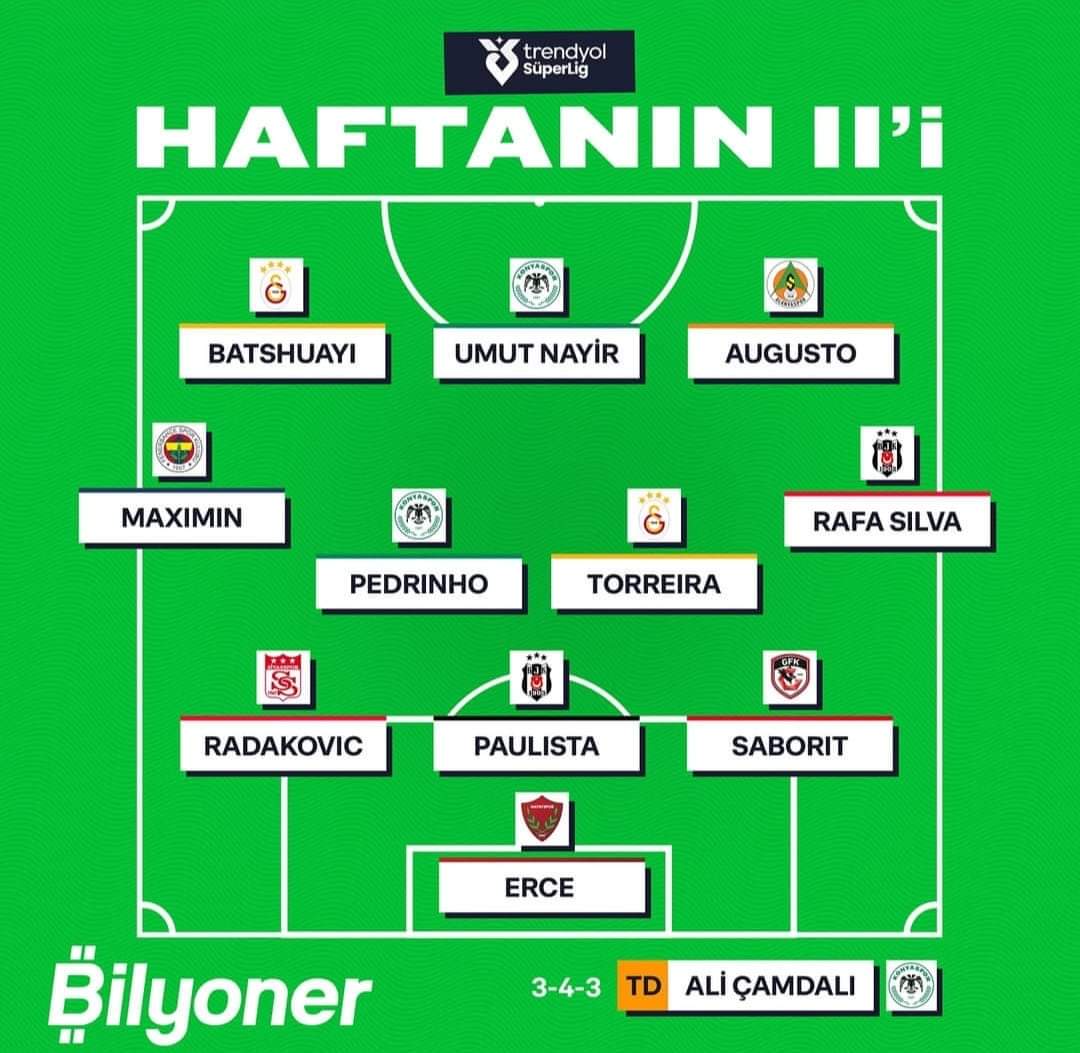 Ayriyeten ilk hafta oynanan maçlarında en başarılı Teknik Direktörü Konyaspor teknik direktörü Ali Camdan’lı gösterildi.