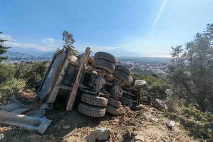 Hatay’ın Samandağ ilçesine bağlı Vakıflı Mahallesi’nde dün gece meydana gelen kazada bir hafriyat kamyonu kontrolden çıkarak bir evin bahçesine uçtu. Olayda facianın eşiğinden dönülürken, mahalle saki...
