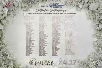 Hatay Büyükşehir Belediyesi Başkanı Mehmet Öntürk, 6 Şubat depremlerinde hayatını kaybeden Büyükşehir personellerini andı. Başkan Mehmet Öntürk, Hatsy Büyükşehir Belefiyesi’in farklı birimlerin...