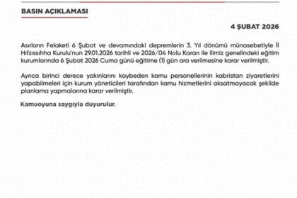 Hatay Valiliği, 6 Şubat Depremlerinin 3. Yıldönümü dolayısıyla 6 Şubat Cuma günü Hatay genelinde okulların tatil edildiğini duyurdu. Hatay Valiliği yaptığı açıklamada, Asırların felaketi 6 Şubat Depre...