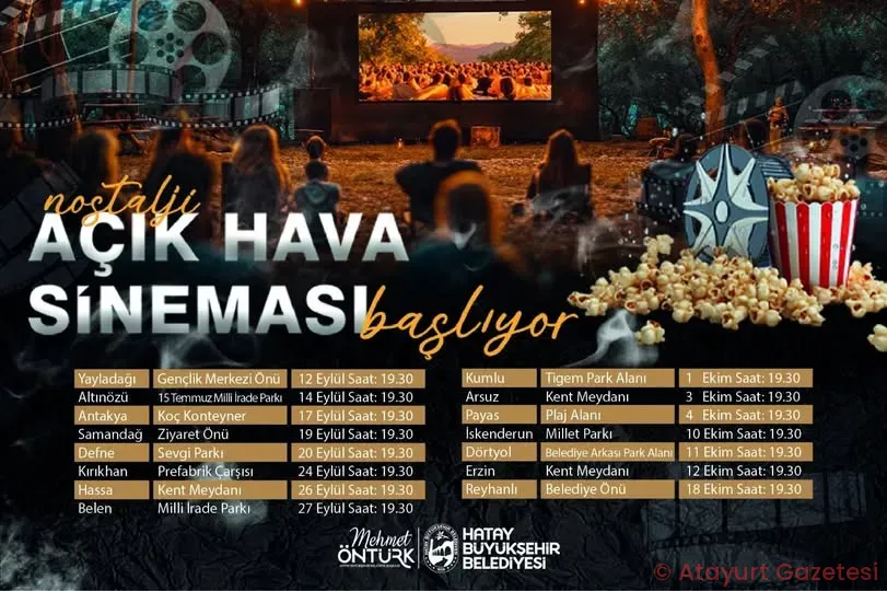 Hatay Büyükşehir Belediyesi , il genelinde sosyal ve kültürel yaşama katkı sağlamak amacıyla açık hava sinema etkinlikleri düzenliyor. Kültür ve Sosyal İşler Dairesi Başkanlığı tarafından düzenlenen N...