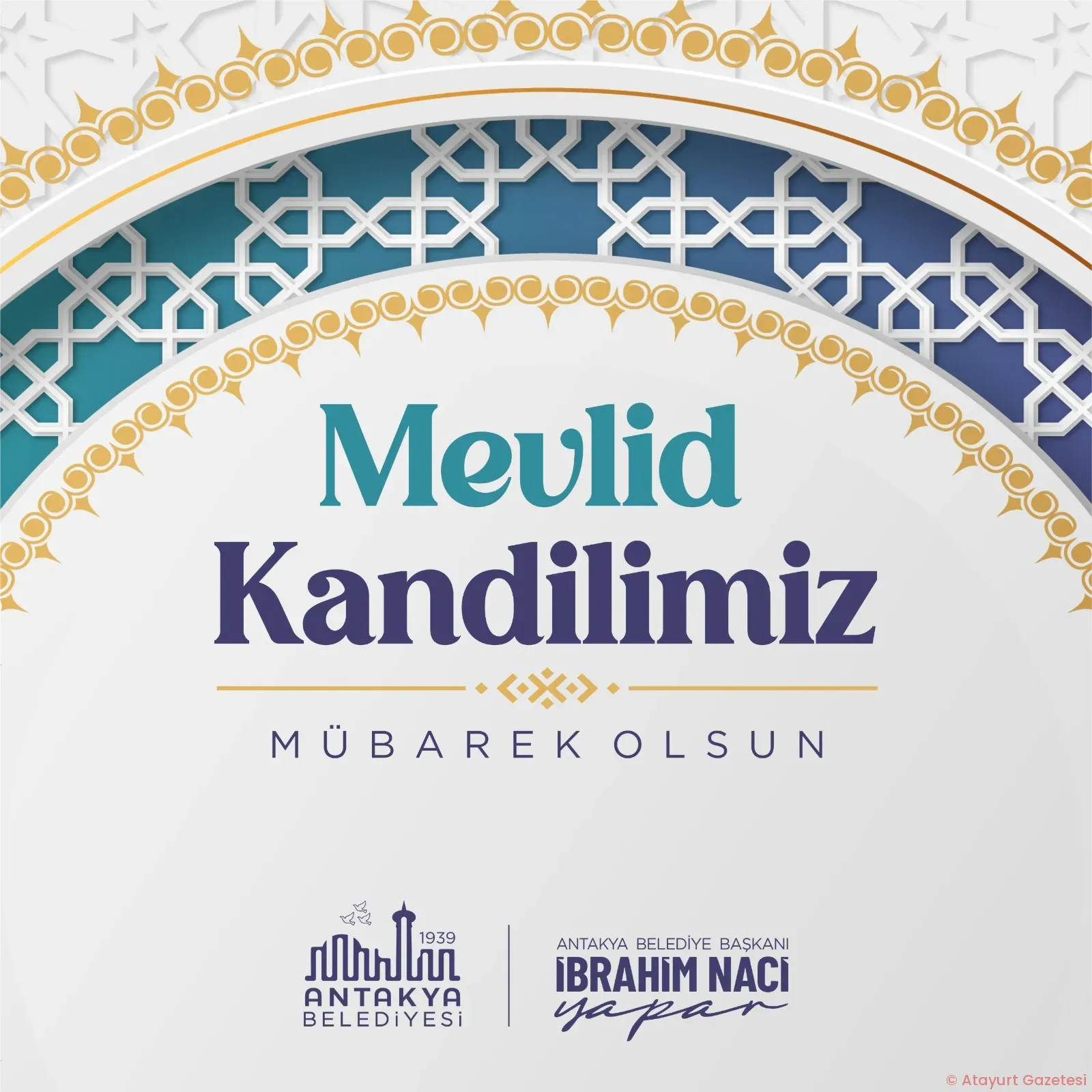Antakya Belediye Başkanı İbrahim Naci Yapar, 3 Eylül gecesi idrak edilecek olan Mevlid Kandili münasebetiyle bir mesaj yayımladı. Başkan İbrahim Naci Yapar Mesajında şu görüşlere yer verdi; “Bugün, bü...