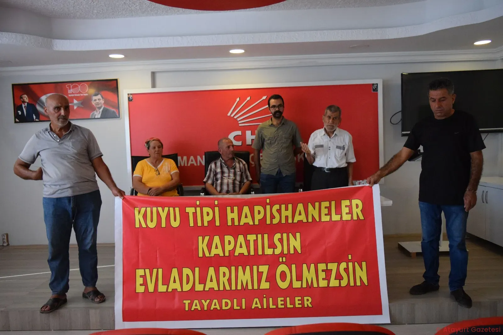 TAYAD’ lı Aileler, “Kuyu Tipi Hapishaneler Kapatılsın, Evlatlarımız Ölmesin!” sloganıyla Samandağ CHP İlçe Binası’nda bir basın açıklaması gerçekleştirdi. Aileler, yakınlarının kuyu tipi olmayan cezae...