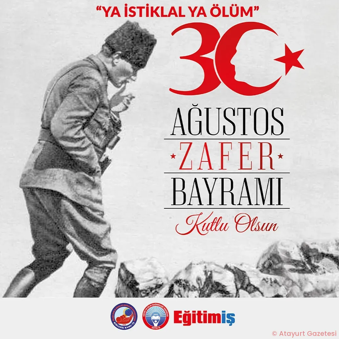 Eğitim-İş Hatay 1 Nolu Şubesi yayınladığı mesajla, 30 Ağustos Zafer Bayramını kutladı. Eğtim İş Hatay 1 Nolu Şube Yönetim Kurulu mesajında, “30 Ağustos Zaferi, Sevr düşü peşinde koşanların emellerini...