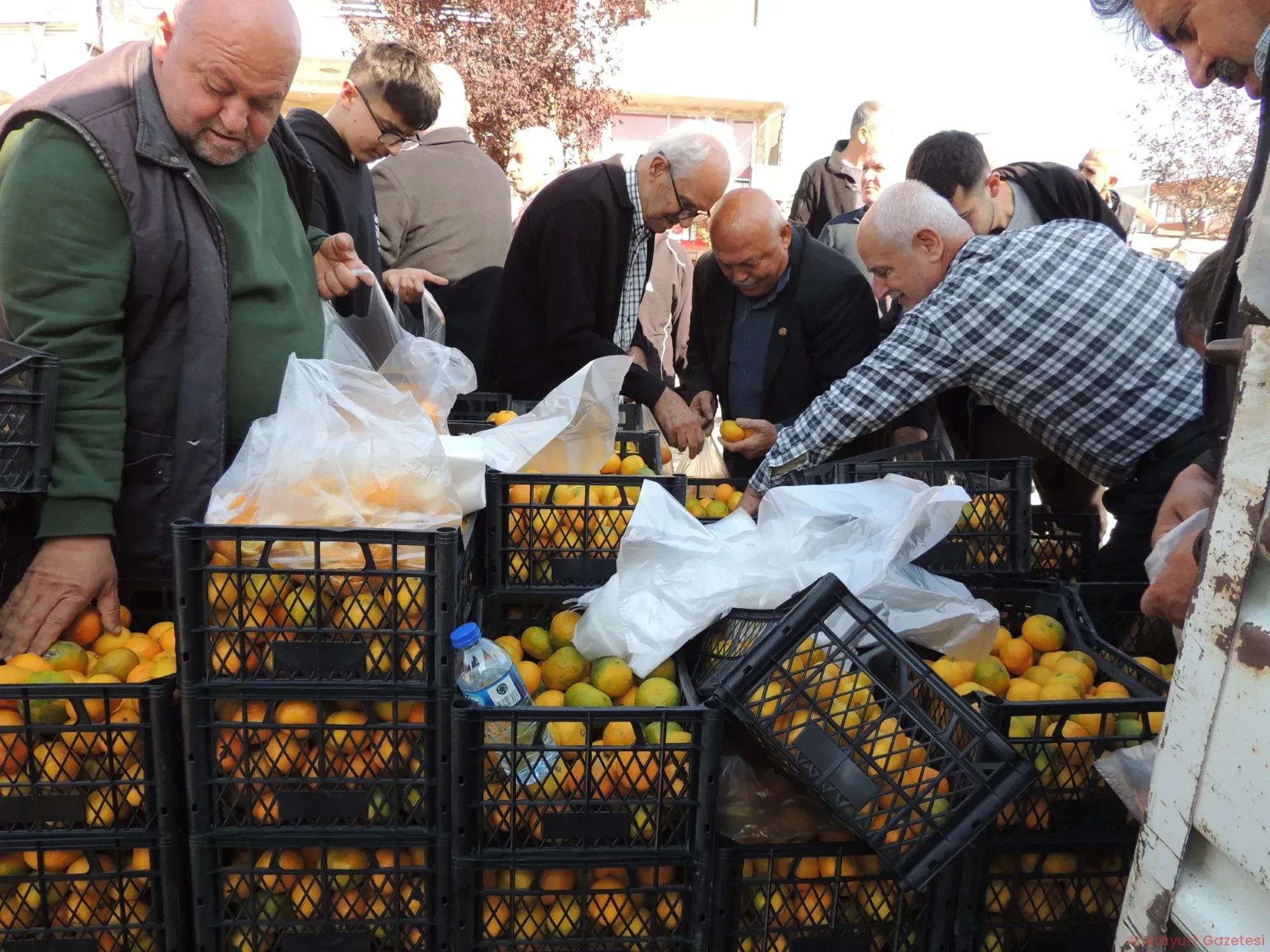 Hatay’ın Samandağ ilçesinde bu sene rekolte yüksek, üretici mandalinayı satamadığı için Atatürk anıt alanında kasalarla mandalini getirdiler, çürümesin diye halka parasız dağıtıyorlar. Samandağ ilçed...