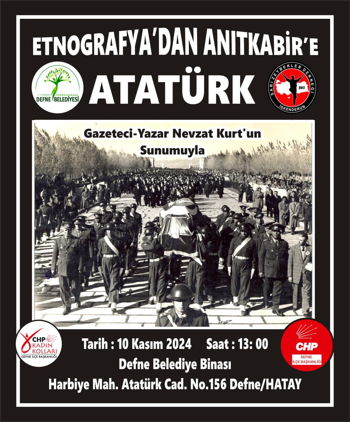 “Cumhuriyetimizin kurucusu, bağımsızlığımızın mimarı Gazi Mustafa Kemal Atatürk’ün vefatının yıl dönümünde; Sari Zeybekler Derneği Genel Başkanı, Gazeteci Yazar Nevzat Kurt”un az bilinen Atatürk fotoğraflarından oluşan “Etnografya’dan Anitkabir’e” fotoğraf sergisinde, tüm ATATÜRK SEVENLERİNİ aramızda görmekten onur duyarız.”