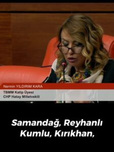 CHP Milletvekili Nermin Yıldırım Kara konuşmasında, Hatay’da çözülemeyen sorunları şöyle dile getirdi:
