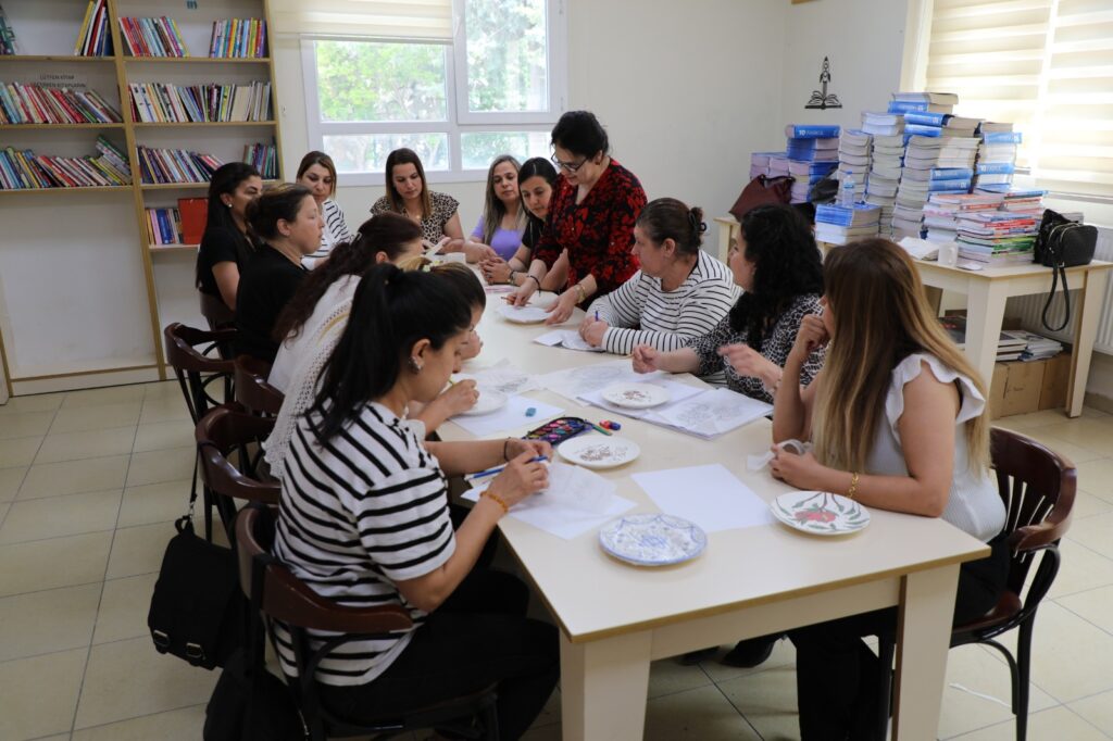 Katılımcılara kurs boyunca geleneksel desen çizimi, boyama teknikleri ve çini yapım süreçlerine dair kapsamlı bilgiler verilerek sosyal ve ekonomik hayata aktif katılımları teşvik ediliyor.