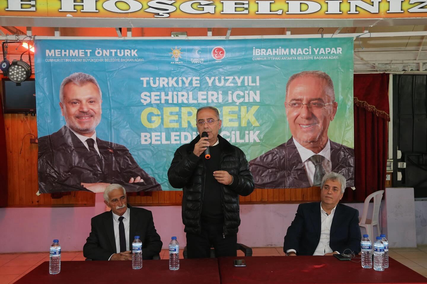Cumhur İttifakı Antakya Belediye Başkan Adayı İbrahim Naci Yapar, tüm vatandaşlardan 31 Mart’ta Antakya Belediye Başkanlığı seçimlerinde kendisine, Hatay Büyükşehir Belediye Başkanlığı seçimlerinde Mehmet Öntürk’e destek istedi.