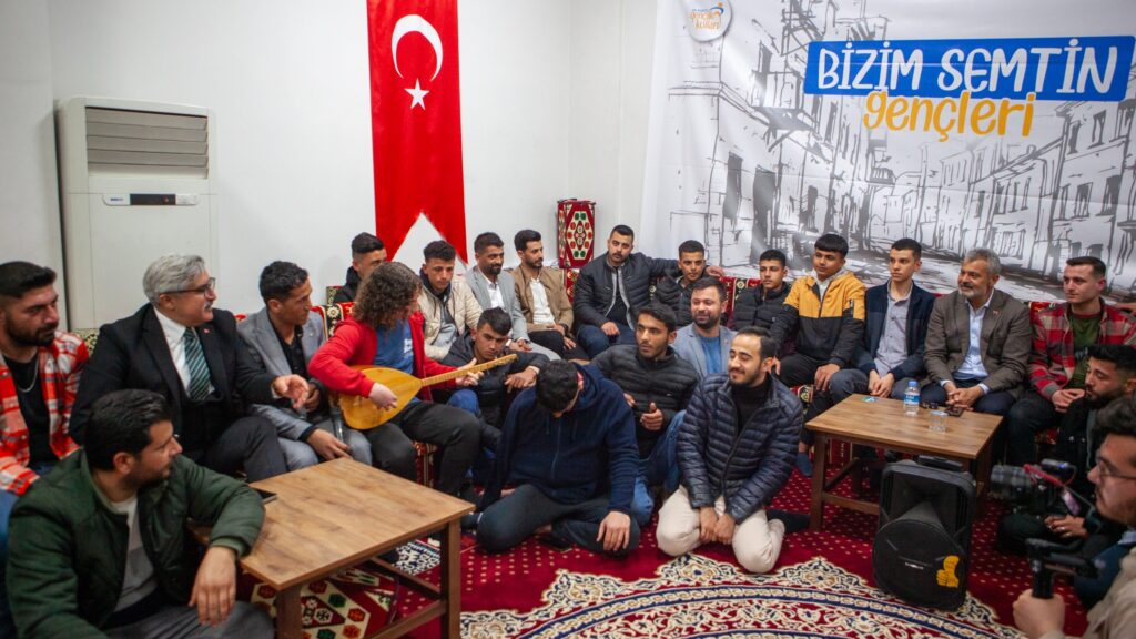 Keyifli bir sohbet ortamında geçen gençlik buluşmasında Mehmet Öntürk, saz dinletisine eşlik etti.