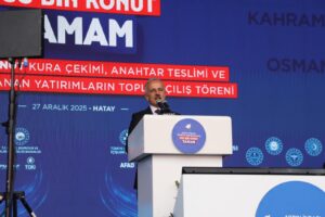 Hatay’da anahtarlarını teslim edecekleri konut ve iş yelerlerinin sayısını 153.755’e çıkardıklarını aktaran Cumhurbaşkanı Erdoğan, “Sadece konut inşa etmedik, şehrimizin altyapısını da tamamen yeniledik. İskanın yanı sıra başta savunma sanayi olmak üzere istihdam sağlayıcı projeleri hayata geçirdik. Defne’de başlayan Antakya merkez ve Samandağ’da içine alan hat boyunca Türkiye’nin en büyük atık su tünelinin inşasına devam ediyoruz. Toplam 1.000.030 dekar sulama sahasına sahip Tahta Köprü Barajı ve Reyhanlı sulama çalışmaları sürüyor. 180.000 metreküp kapasiteye sahip yeni biyolojik atık su arıtma tesisimizin tamamlanmasıyla birlikte Hatay’ın kanalizasyon problemi çözülmüş, Asi Nehri’nin de kirlilik sorunu ortadan kalkmış olacak. Tarihi yapılarımızı da çok titiz bir restorasyon sürecinden geçirdik. Hatay’ın sembol eserlerinden Habibineccar Camimizi aslına uygun şekilde ihya ederek ibadete açtık. Şehrimizin bir başka değeri olan Harbiye Şelaleleri’ni de inşallah eski güzel günlerine kavuşturacağız” dedi.