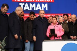 500 bin sosyal konut projesinde deprem bölgesine özel kontenjan ayrıldığını kaydeden Cumhurbaşkanı Erdoğan, Hatay başta olmak üzere 11 ilde on binlerce yeni konutun inşa edileceğini ifade ederek hem bölgenin hem Türkiye’nin yeniden inşası için durmadan çalışacaklarını söyledi.