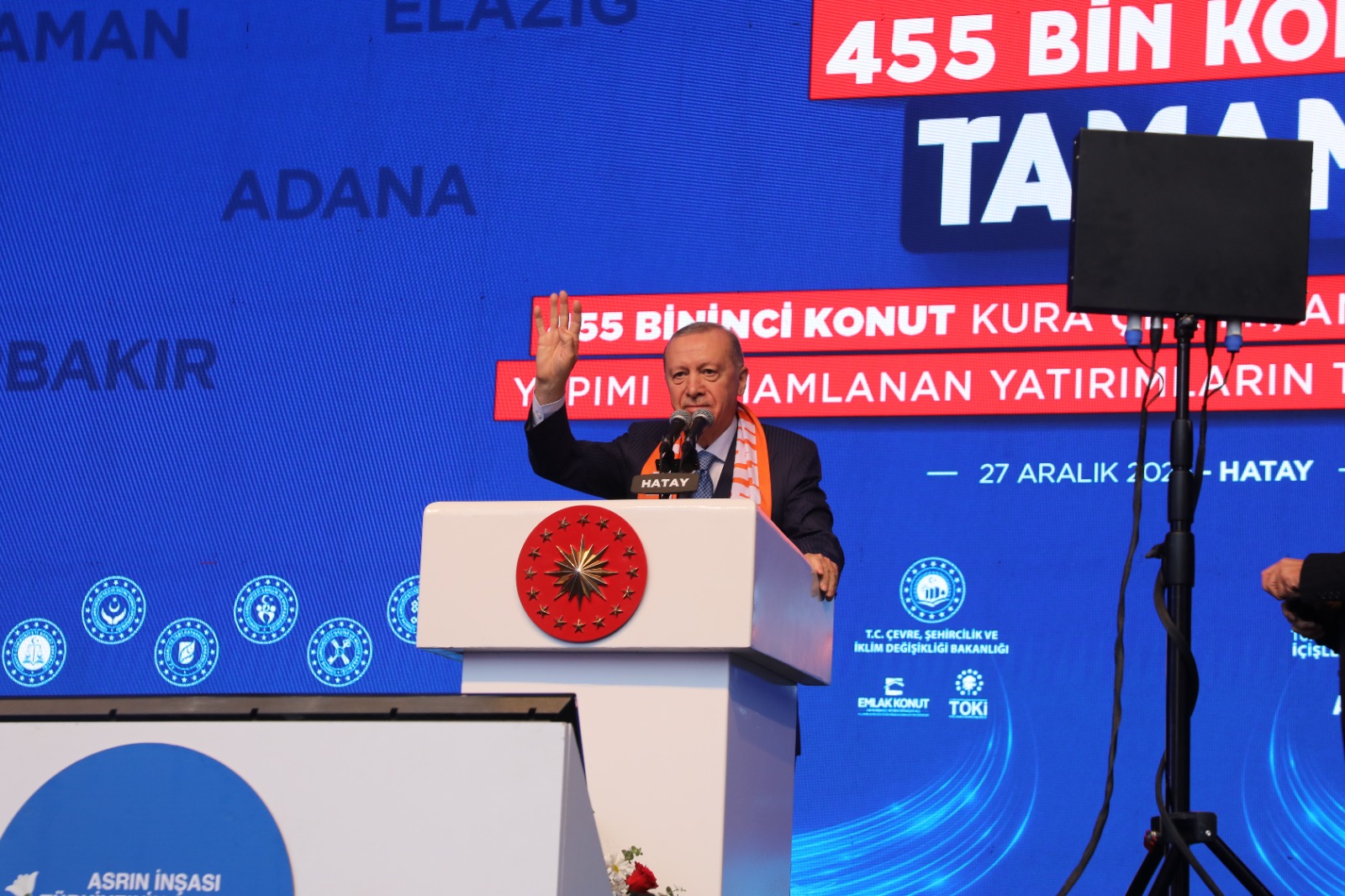 Cumhurbaşkanı Recep Tayyip Erdoğan ve Milliyetçi Hareket Partisi Genel Başkanı Devlet Bahçeli, Hatay’da düzenlenen 455 Bininci Konut Kura Çekimi, Anahtar Teslimi ve Yapımı Tamamlanan Yatırımların Toplu Açılış Töreni’ne katıldı.