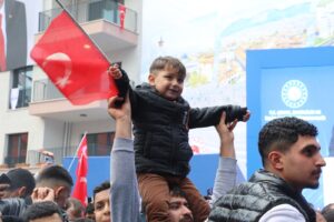 Bugün gelinen noktada, sabrın ve inancın meyvelerinin alındığını belirten Başkan Mehmet Öntürk, Cumhurbaşkanı Erdoğan’ın Hatay’a verdiği öneme ve desteğine dikkat çekerek “”Hatay bitti, burası hayalet şehir oldu.” denilen yerde Bugün dünyanın en büyük şantiyesinde artık ışıklar sahipleri için yanıyor! Devletimiz bunca yükün altına girmişken, biz de boş duramazdık” dedi.